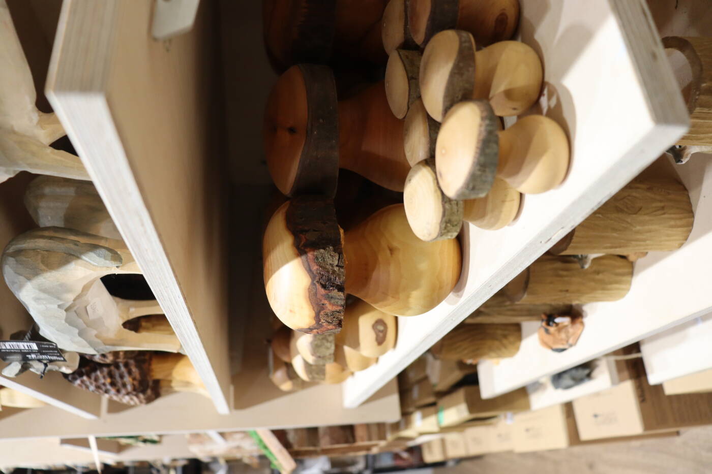 Articles et jouets en bois, décoration, produits régionaux présentés en vitrines successives qui invitent à entrer dans un monde féérique, hors du temps.