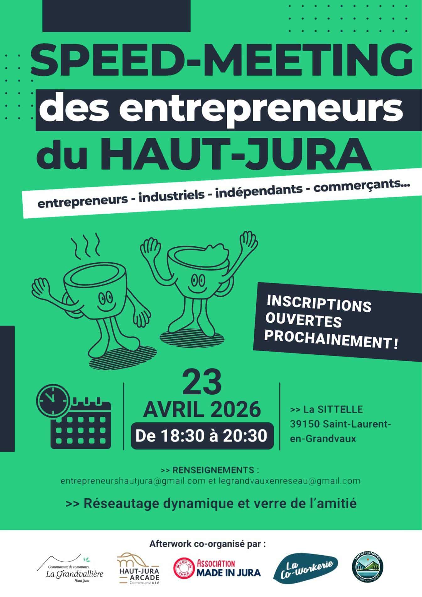 Ce speed-mmeting se tiendra le jeudi 23 Avril 2026, de 18h30 à 20h30, salle la SITTELLE à Saint-Laurent-en-Grandvaux.